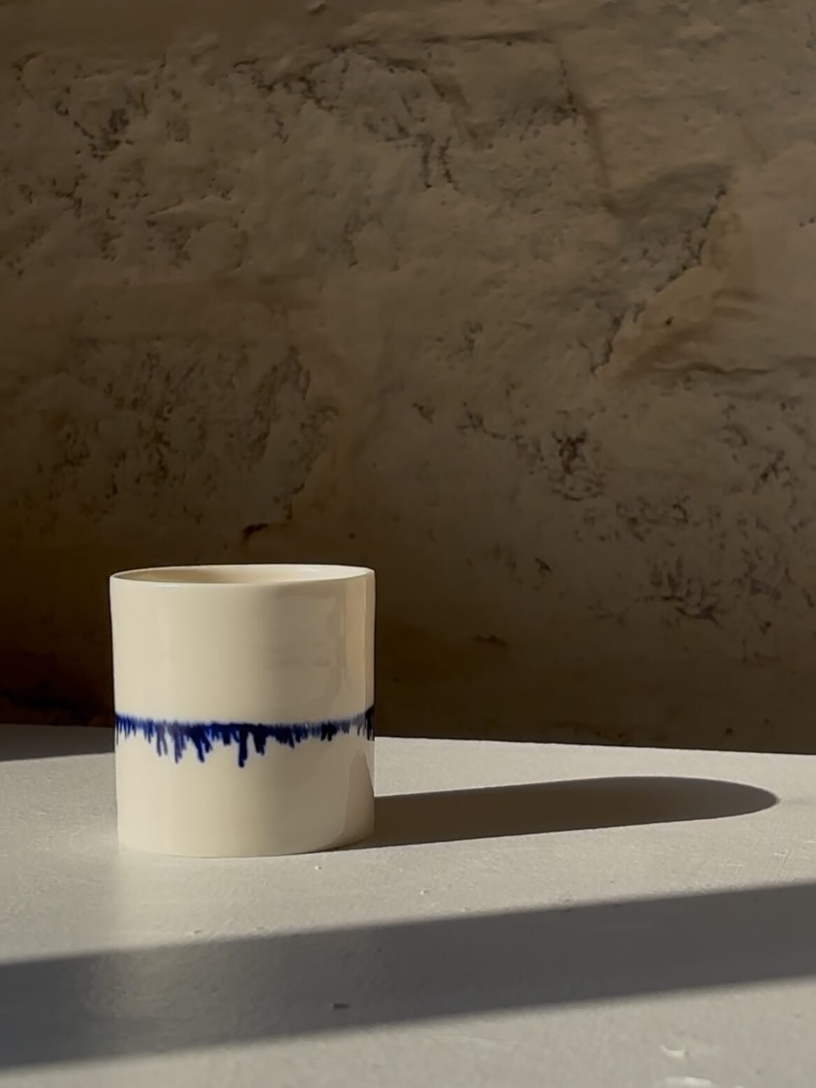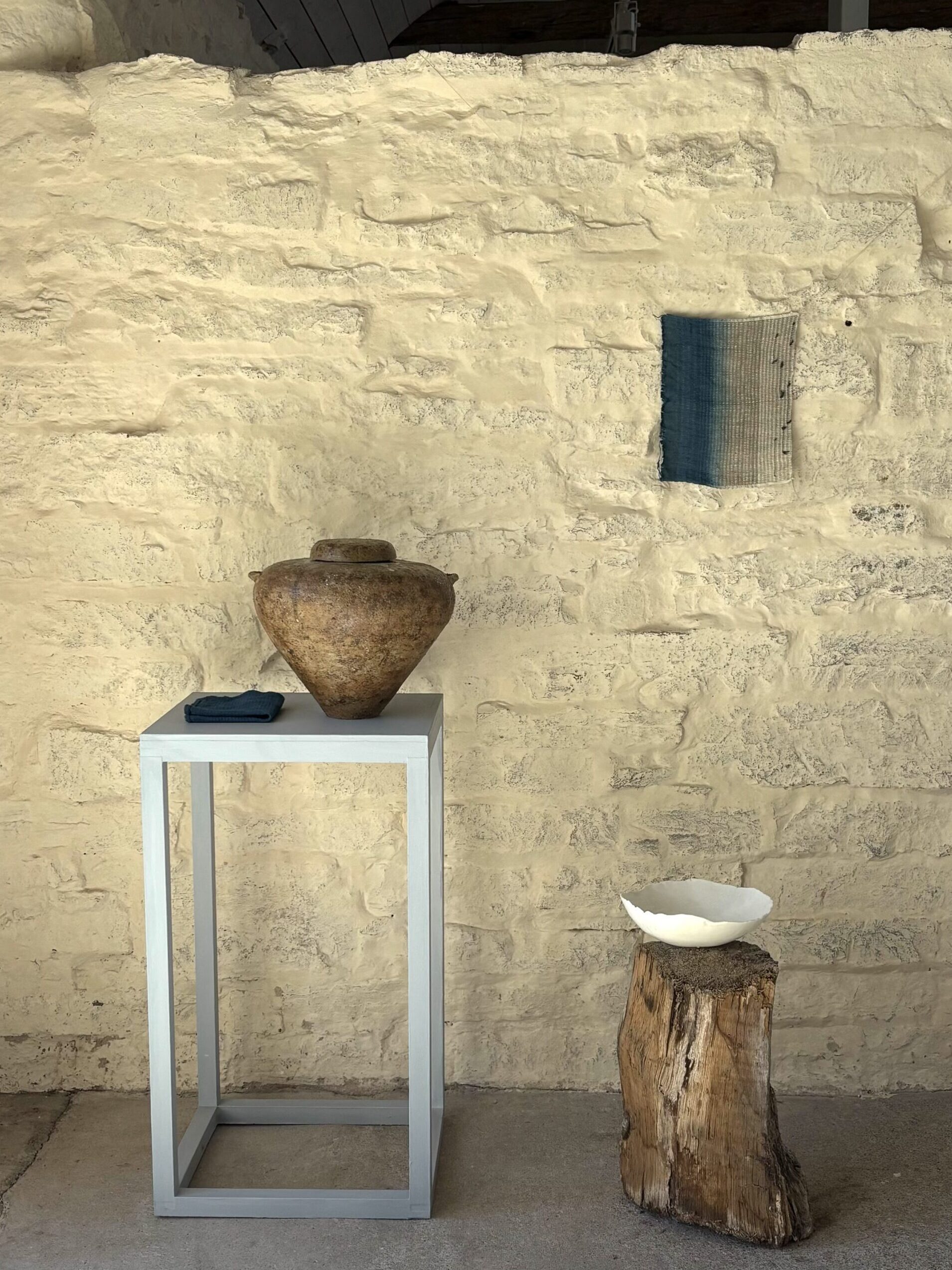 Onggi inspired fermentation pot made from wild clay from Öland and Delft ware inspired porcelain cups.